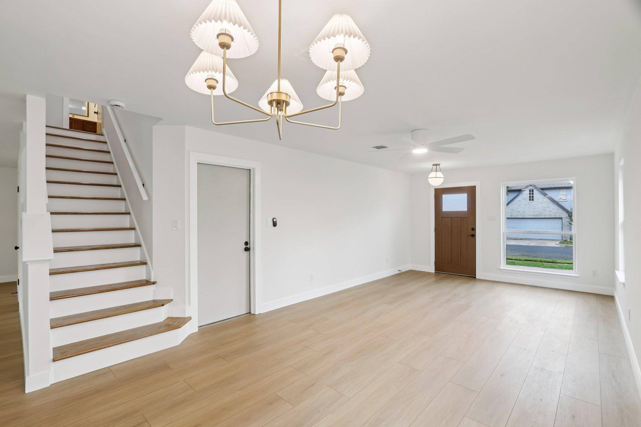 Welcome to this beautifully reimagined 4-bedroom, 2.5-bath, 1,912 sq. ft. home located in the highly sought-after Milwood neighborhood of Austin, TX, where every inch has been thoughtfully updated to blend modern design with everyday functionality. The main level showcases brand-new LVP flooring that enhances the open flow of the home, while the upstairs features new plush carpeting for added comfort. All bathrooms have been meticulously renewed with designer tile, contemporary vanities, and upgraded plumbing fixtures, creating spa-like retreats throughout. The fully transformed kitchen features all-new cabinetry, sleek quartz countertops, and stainless steel appliances, offering the ideal blend of style and practicality. The primary suite serves as a private sanctuary with a dual vanity, designer tile, premium plumbing fixtures, a luxurious soaking tub, and a separate walk-in shower. Major upgrades include a brand-new roof, new energy-efficient windows throughout, and a new hot water heater, ensuring lasting value and peace of mind. Additional enhancements—fresh interior and exterior paint, refreshed landscaping, and a power-washed driveway and entry—boost both curb appeal and overall comfort. The home offers a designated living room anchored by a gas fireplace wrapped in designer tile with a custom mantle, along with a secondary living area that flows seamlessly into the dining space, highlighted by a designer chandelier and updated lighting throughout. Ideally located just minutes from The Domain's top-tier shopping, dining, and entertainment, and in close proximity to Rattan Creek Park and highly regarded Pond Springs Elementary, this home delivers modern comfort, thoughtful upgrades, and exceptional convenience in one of Austin's most desirable communities.